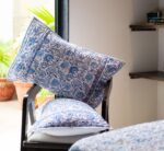 Immerse your space in refined charm with this quilted cotton bedcover set, showcasing a traditional hand block printed floral pattern in rich tones of indigo blue and earthy cocoa brown on a soft ivory base. The finely detailed floral motifs and symmetrical layout add depth and heritage appeal, making it a perfect fit for both classic and contemporary spaces.