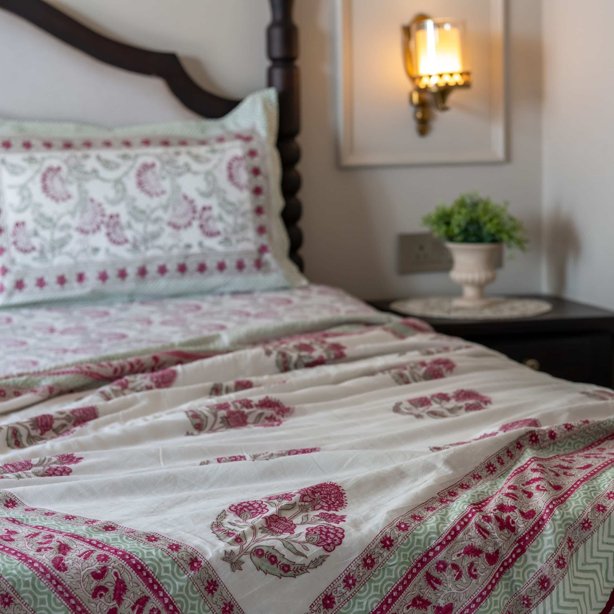 Set Includes: 1 King Size Bedsheet + 2 Pillow Covers+ Two Dohars