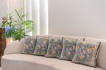 Bring a touch of timeless tranquillity to your home with Green Solace. This set of five quilted cushion covers, each measuring 16 x 16 inches, blends soothing tones of teal and green with delicate hand-block floral motifs in rose, mustard, and lilac hues.